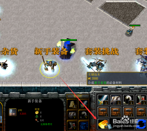 点击后直接把这里的四件新手装备都采办了,如下图所示。