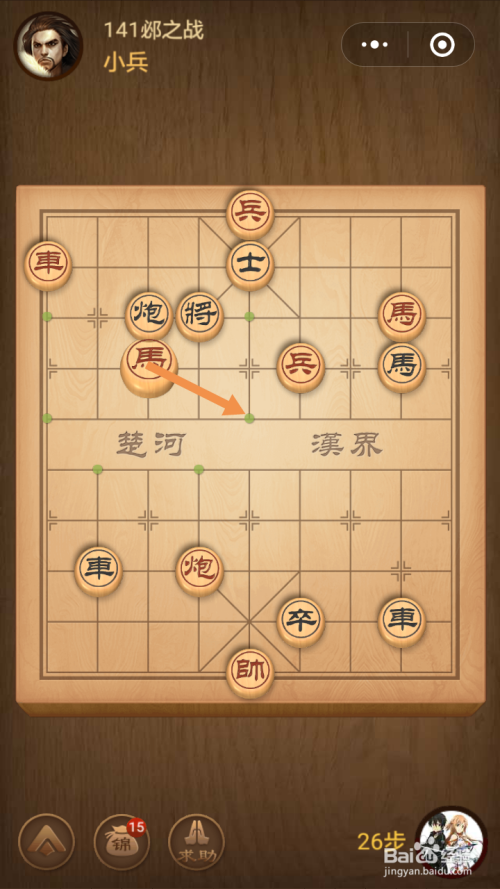 第十六步馬移动到下图中箭头标注的位置。