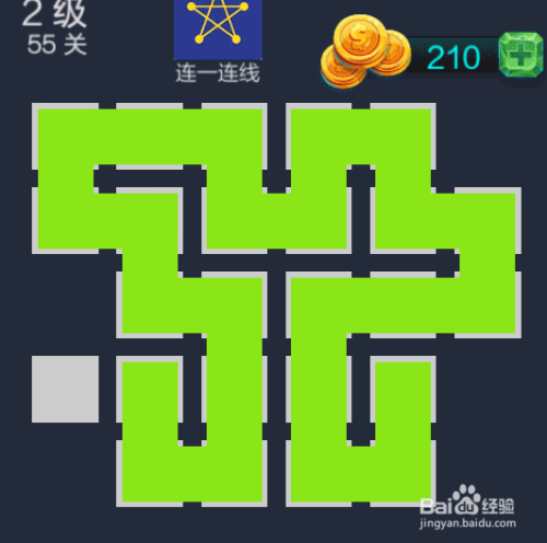 最强连连续2级55关的画法如下图所示,最后那一个连上就可以了。
