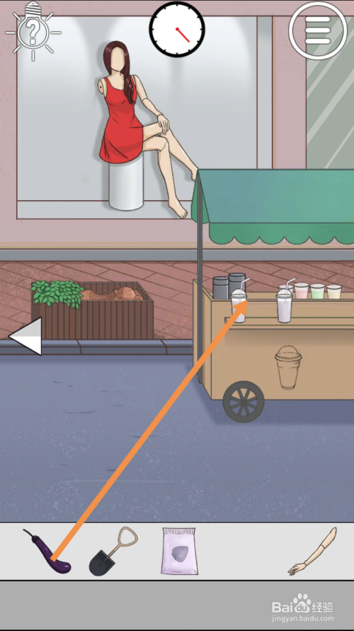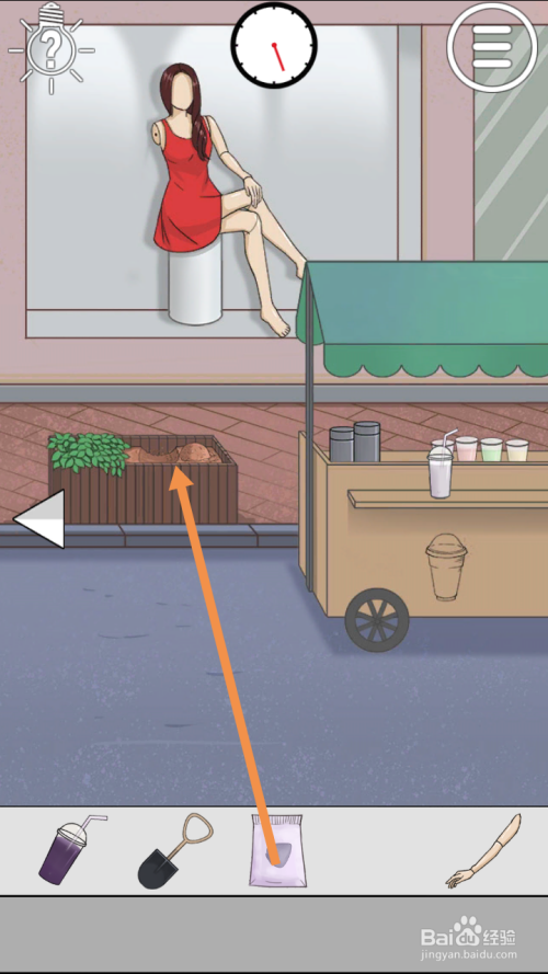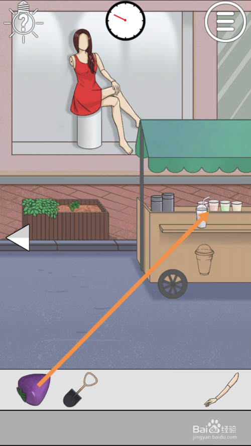 在左边将草莓汁拖动到女本家儿角身上,然后将假人手臂拖动到男本家儿角身上就过关了。