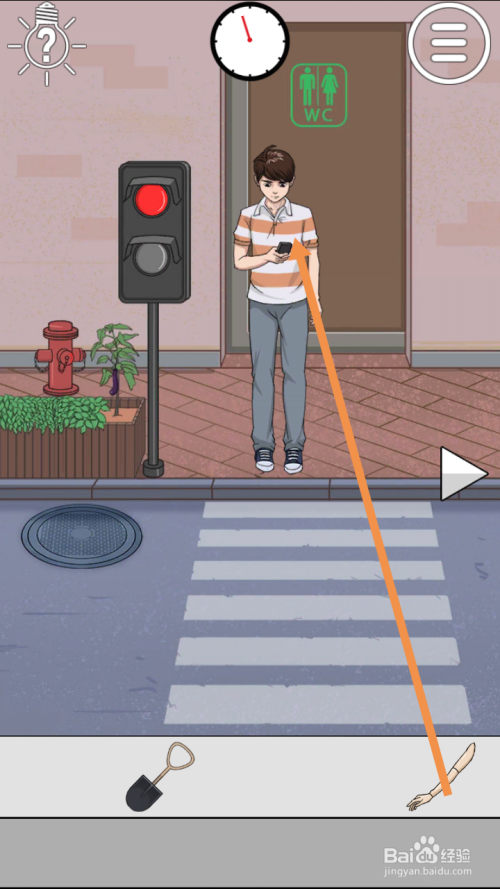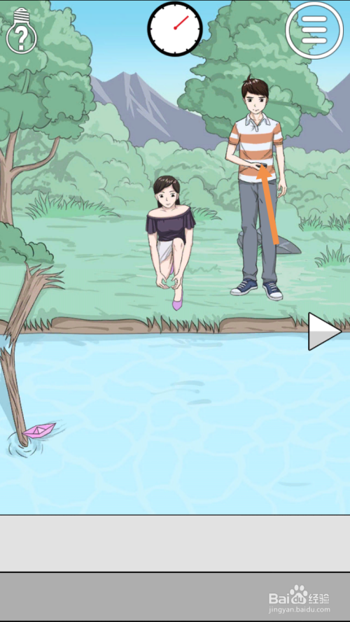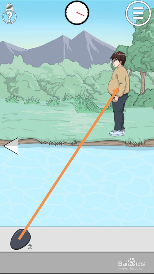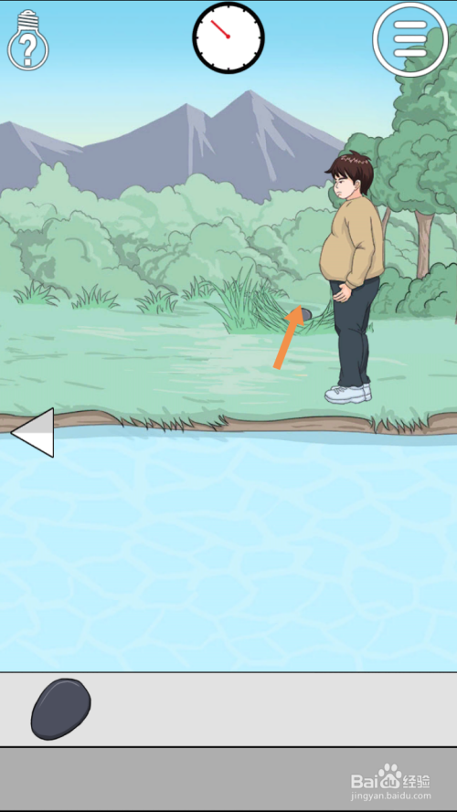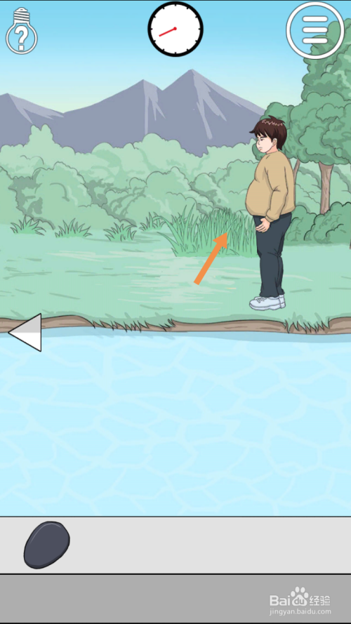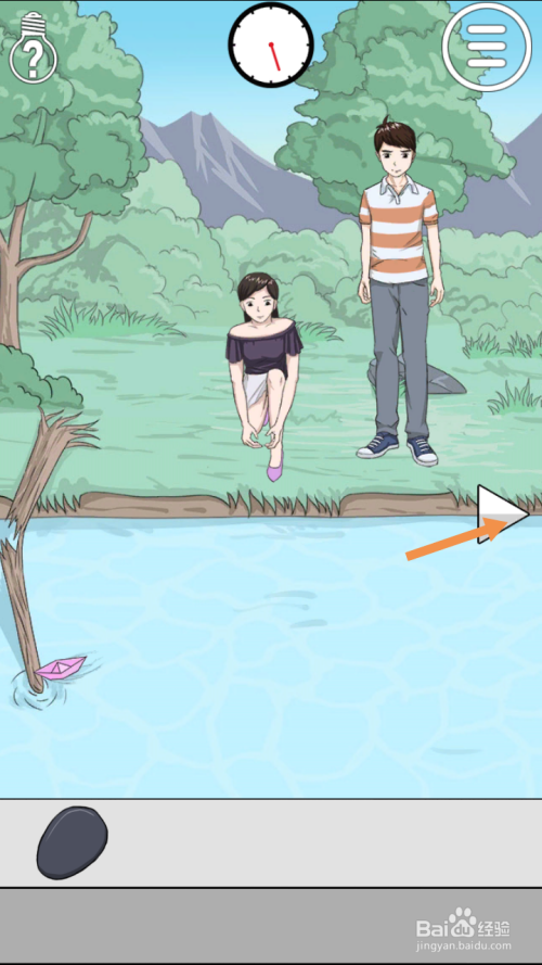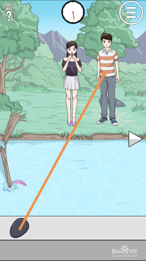 第27关点击男本家儿角手上的石头,然后点击标的目的右箭头到右边去。