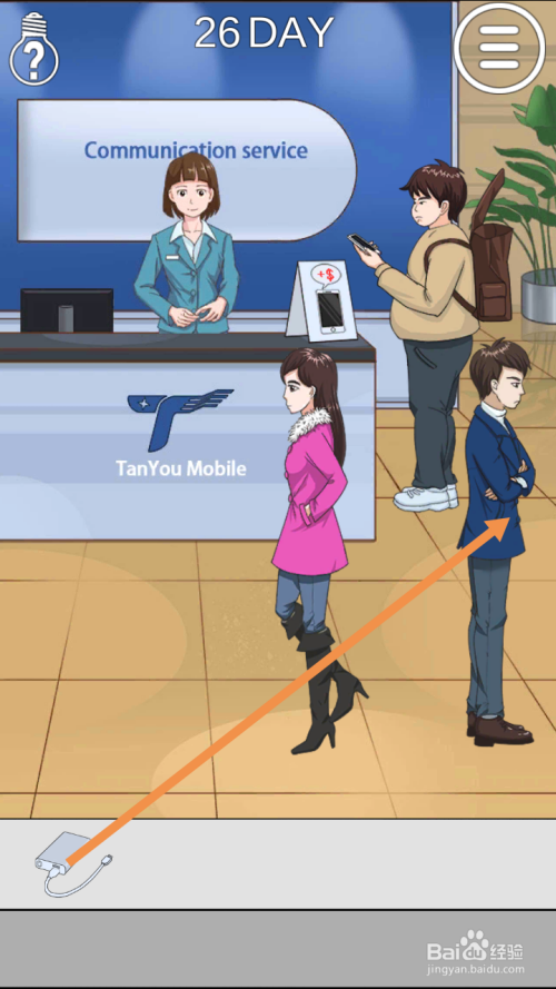 给胖子充话费后,将充电器拖动到男本家儿角身上就可以过关了。