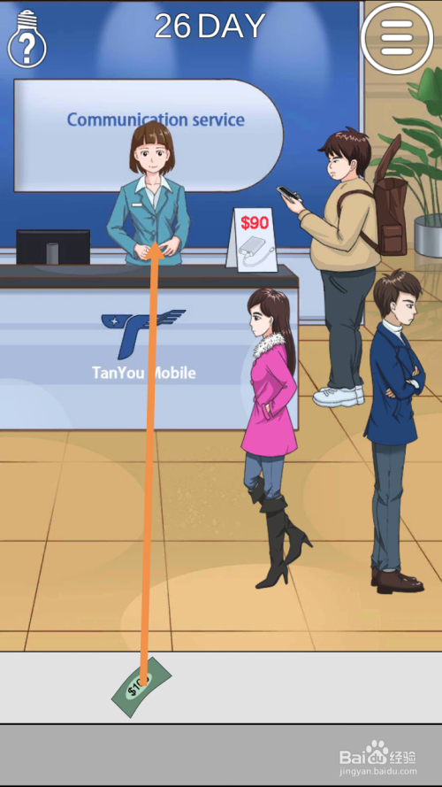 点击告白架后,将钱拖动到柜台蜜斯身上。