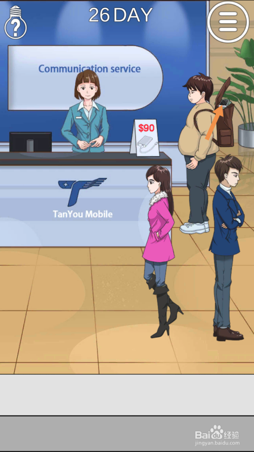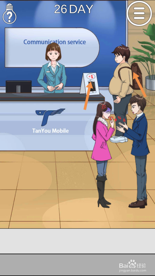 第26关点击柜台上的告白架,然后点击胖子的背包。