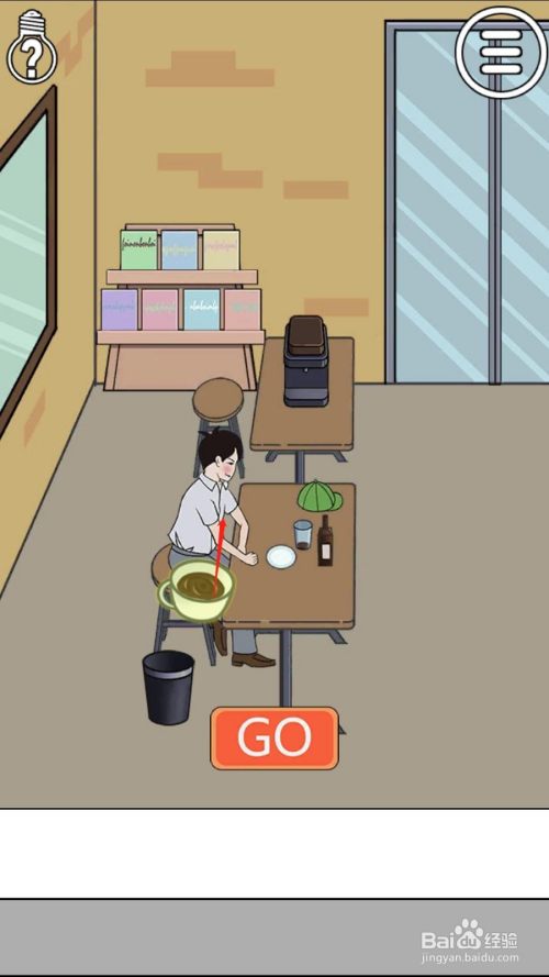 第13关:先把男本家儿杯子里的咖啡给男本家儿喝,取下他的杯子到后面咖啡机再接一杯给男本家儿喝,点击“GO”
