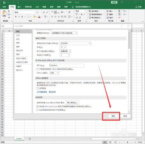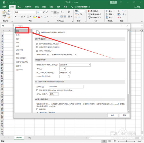 在Excel选项页面,单击“常规”选项卡