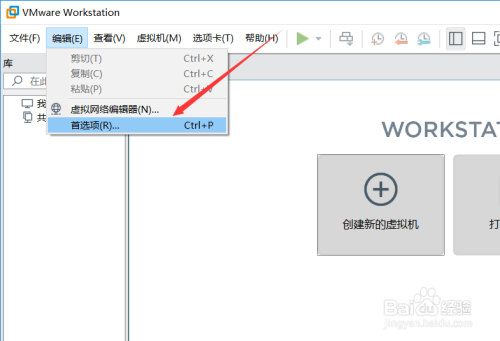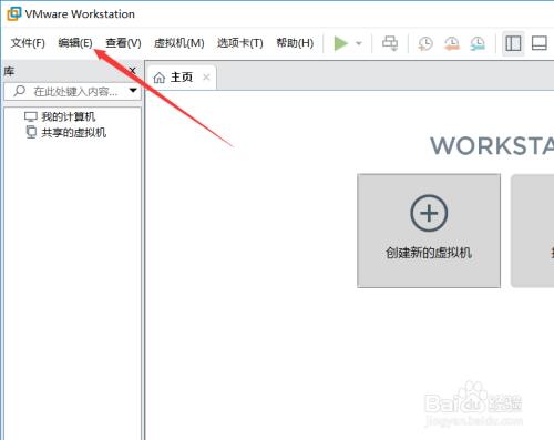 打开VMware Workstation 15软件后,直接点击导航栏上的【编纂】,如下图所示。
