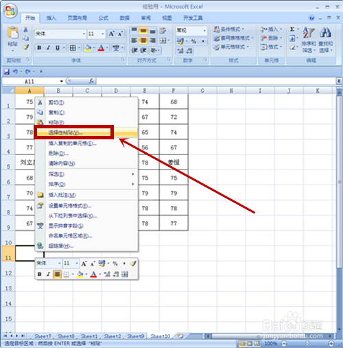 选中空白肆意单位格,右键单击“选择性粘贴”