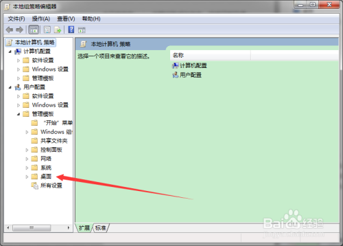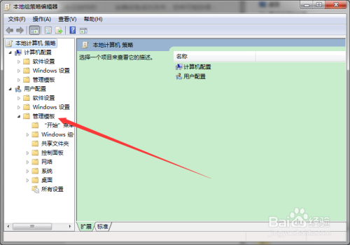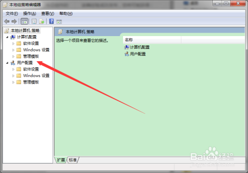 打开当地组策略编纂器窗口;