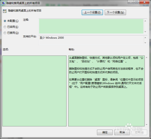 - 注重完当作以上设置后,您的桌面上的所有项目将被埋没和禁用;