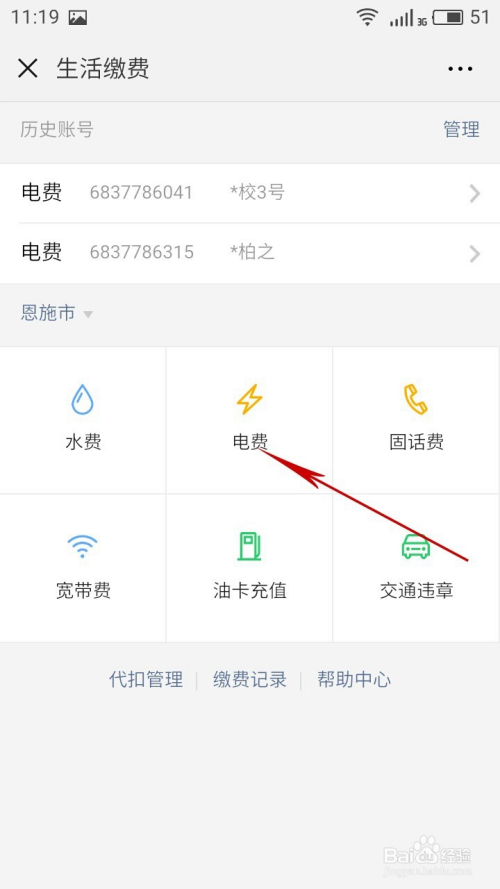 点击“电费"
