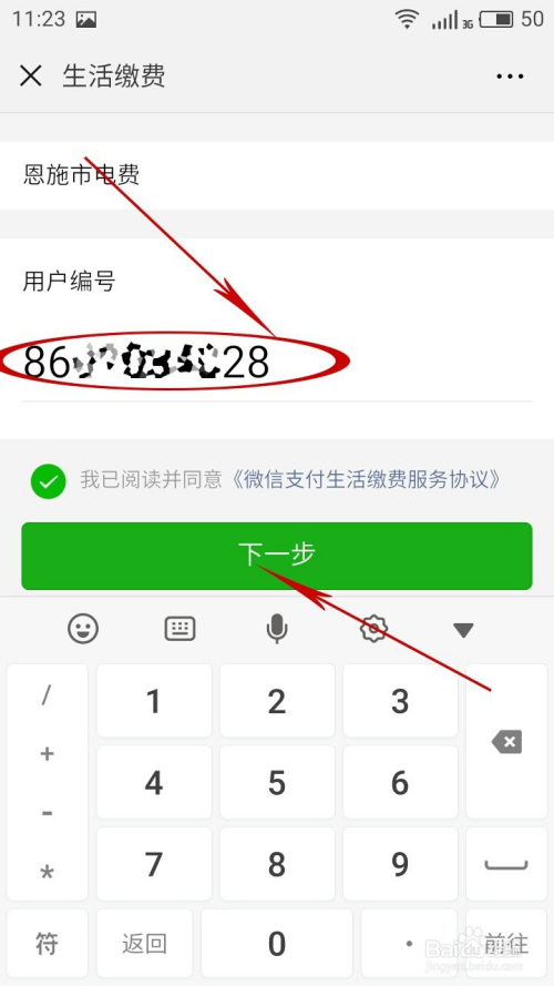确认打√,我已阅读并赞成【微信付出费缴费办事和谈】点击“下一步”