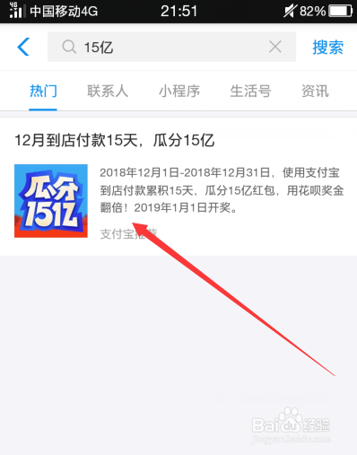 这时付出宝页面就会弹出一个窗口,只有我们12月24日到店付出就有机遇抽取花呗还条目红包
