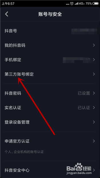 在账号与平安设置中找到并点击【第三方绑定账号】选项。