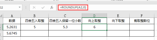 若是要标的目的上取整,利用Roundup函数,输入=Roundup(A2,0),显示成果为6