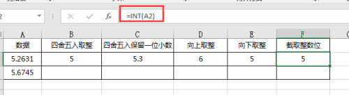 若是要四舍五入取整,应该利用Round函数,输入=Round(A2,0),取整后显示成果为5