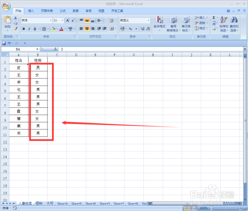 用法式打开要输入数据的文档。有一份名单需要输入学生的性别