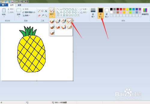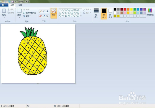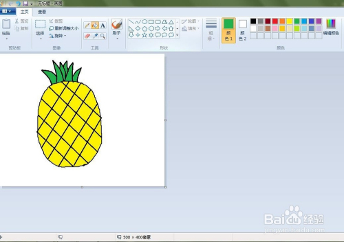 点击“用颜色填充”按钮,将菠萝填充上响应的颜色。