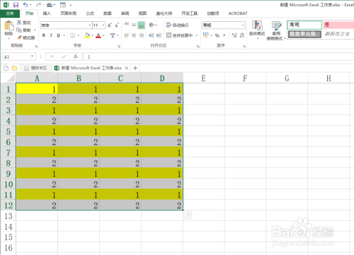 最终结果如图所示,实现了隔行填充单位格颜色。