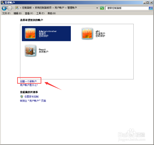 打开办理其他账号,选择“建立一个新用户”,如图所示;