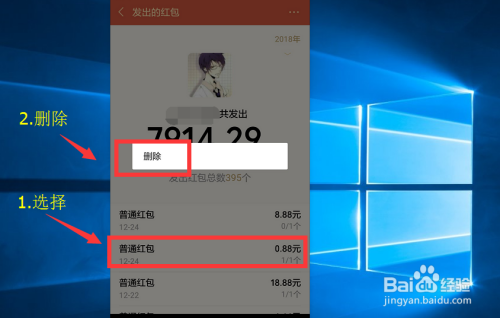 在发出的红包页面,选摘要删除的记实,按住选择弹出的删除即可。