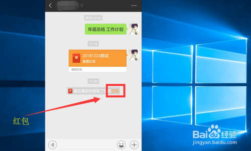 先在微信对话中,找到一个已经发个红包的人,或者直接发个红包给别人,期待对方领取后就可以操作了,我发了一个带日期的测试红包。