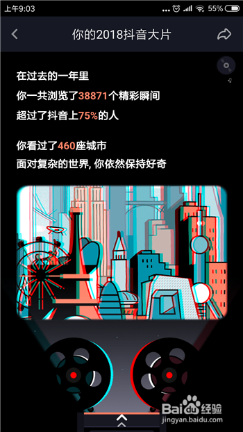 如许就起头生当作我们的抖音年夜片了,其实所谓的抖音年夜片就是这一年里我们利用抖音的环境,抖音年夜片有良多项,大师直接上滑界面即可起头下一项。