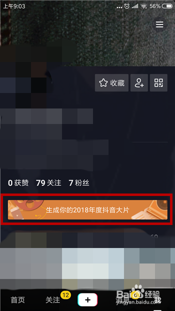 点击打开抖音的小我本家儿页后就能看到【生当作你的2018年度抖音年夜片】,点击这个功能。