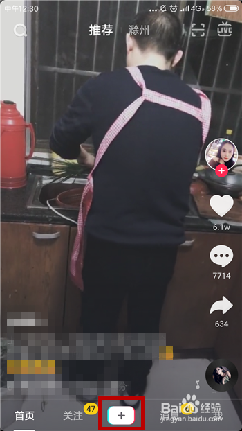 想要拍圣诞眼泪妆的视频需要在抖音里点击底部的【+】选项。