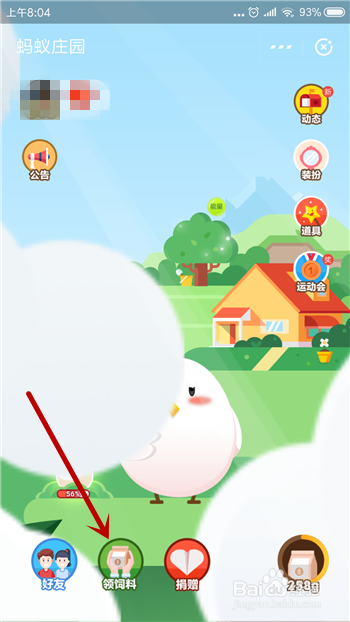 在蚂蚁庄园里面点击使命【领饲料】,打开使命界面。