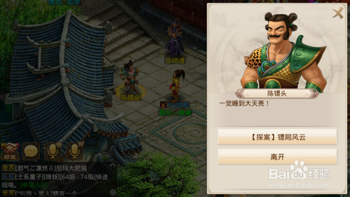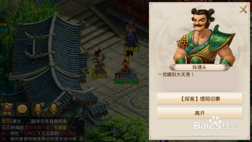 然后揭开谜题今后,去找杨镖头,在镖局门口,扣问一下环境,再去找陈镖头,在百晓通的对面。