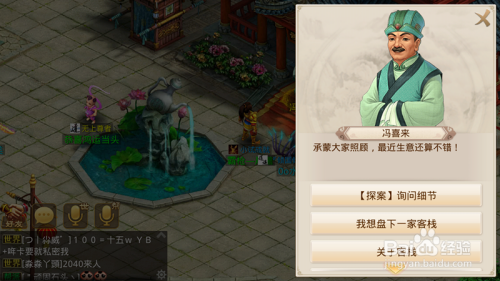 然后我们再去客栈,找冯喜来扣问环境,问一下细节,在天墉城客栈门口。