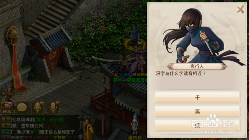 然后我们再去找夜行人解决谜题,关头在这里你需要知道谜底,就是问一些字的读音和诗句。在这里我说一下问题的总结,并会慢慢更新,燚读音为亿,倓读音为谈,下面说诗句: