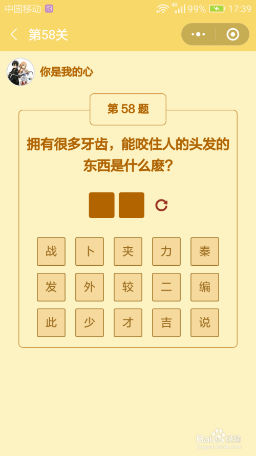 第58关谜底是发夹。