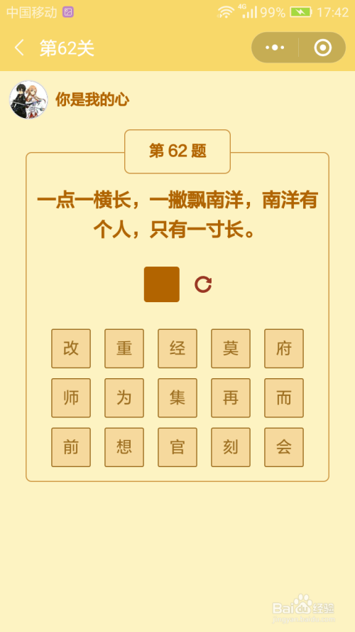第62关谜底是府。