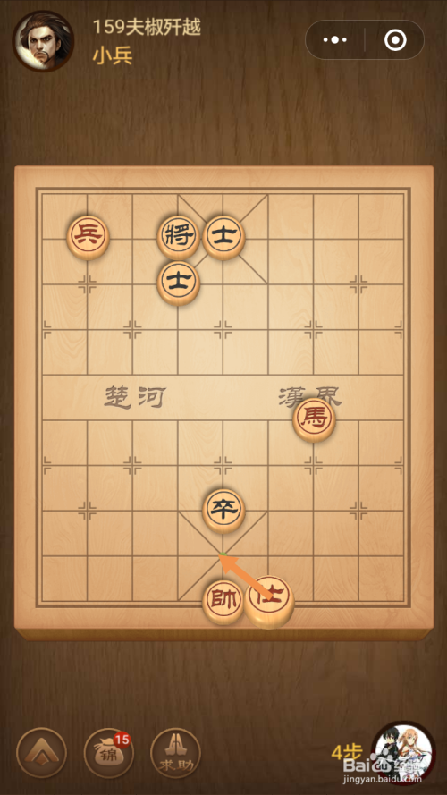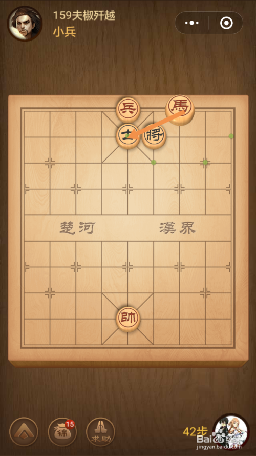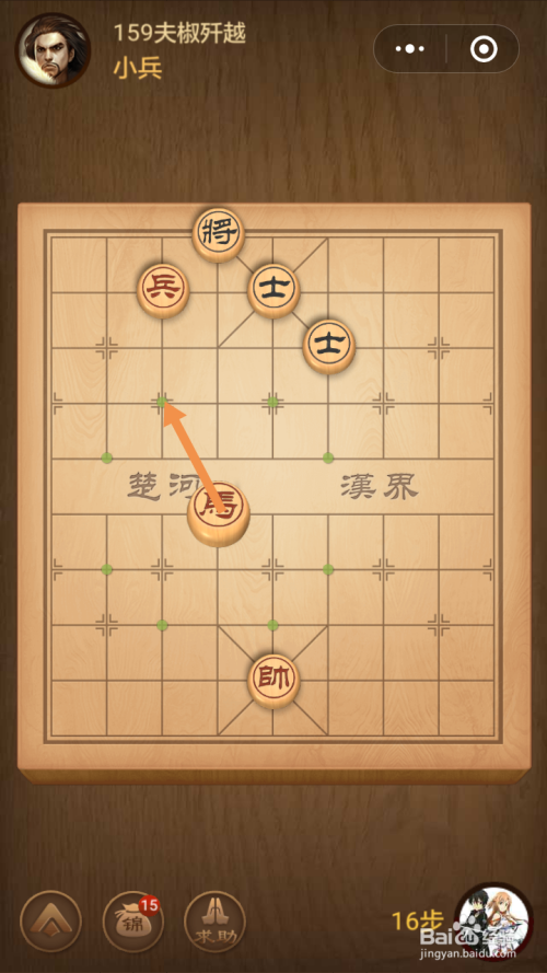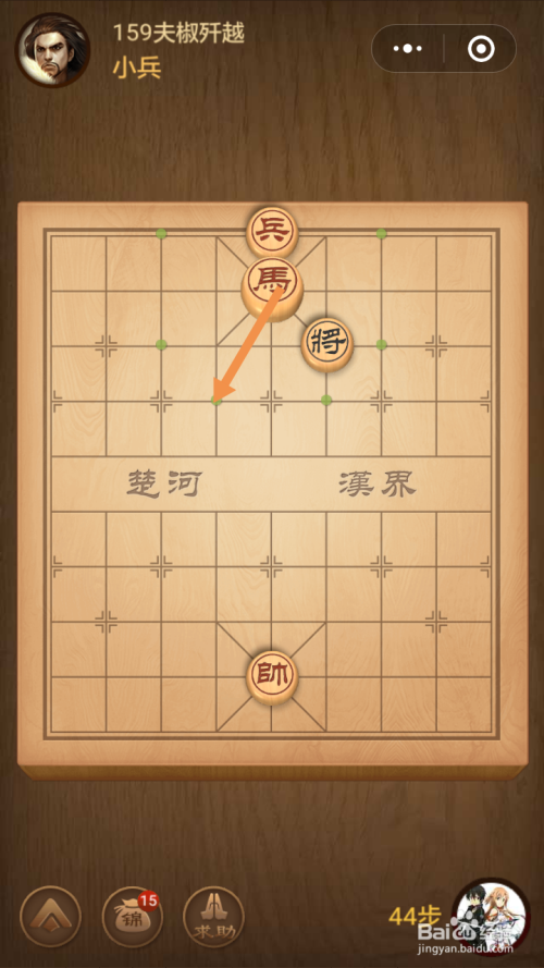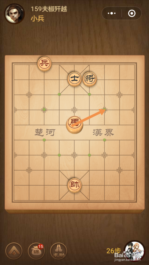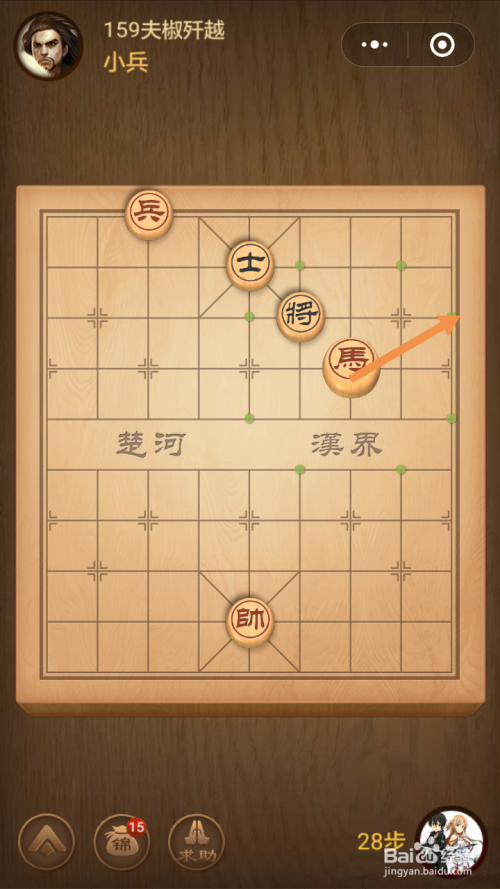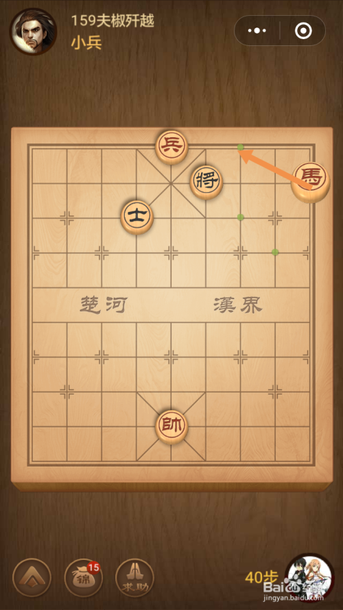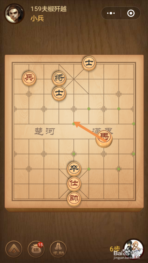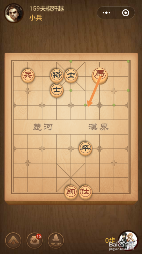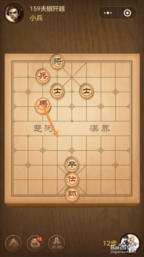 第159关第一步馬移动到下图中箭头标注的位置。