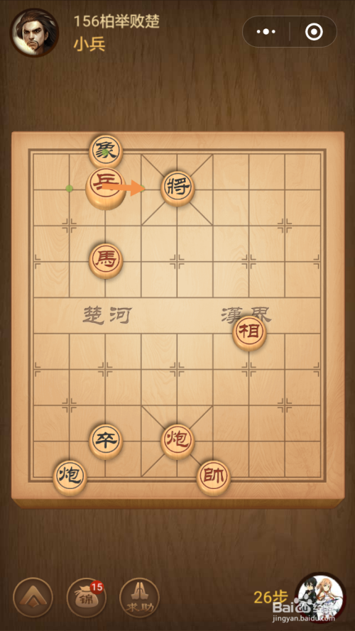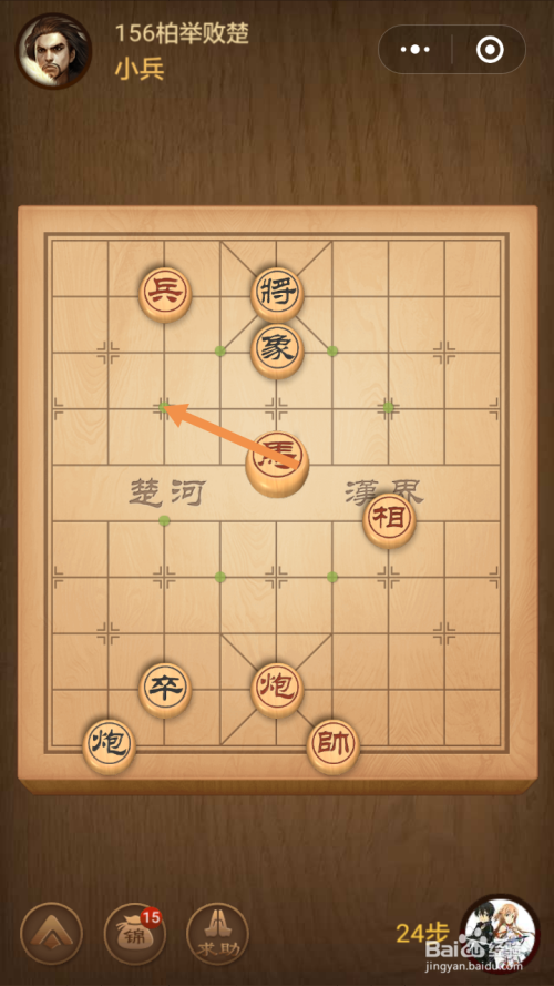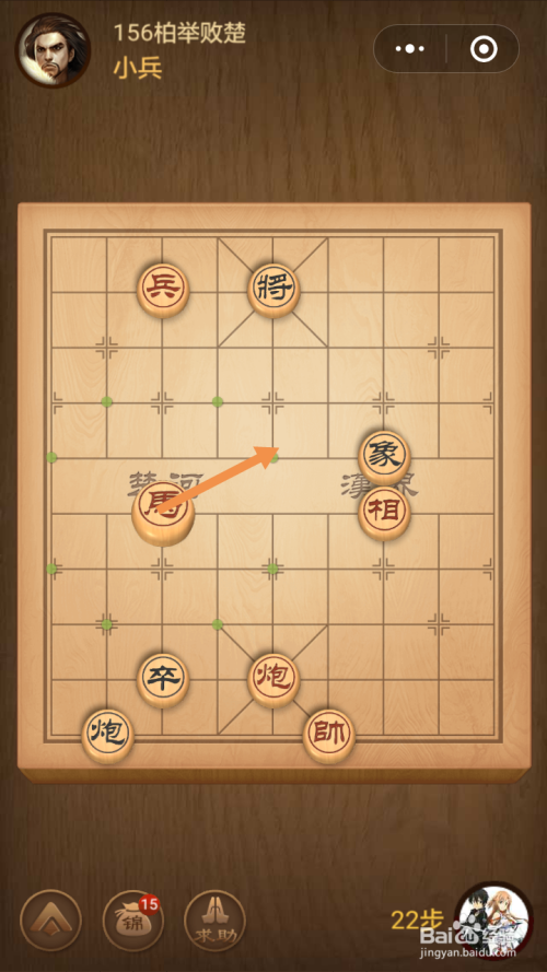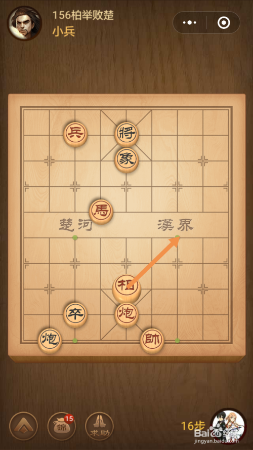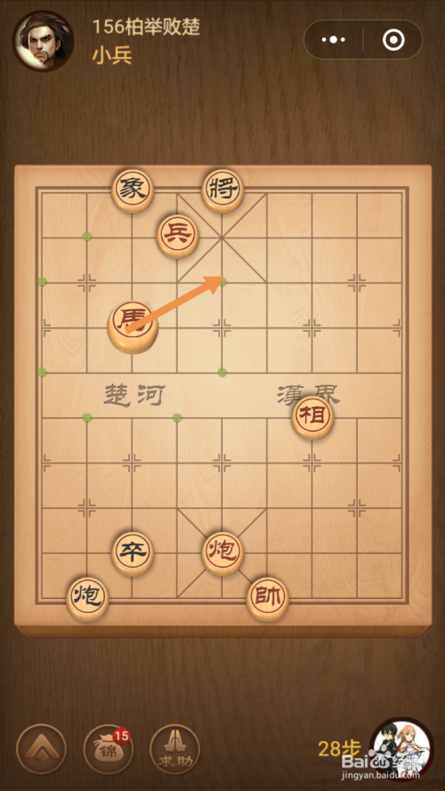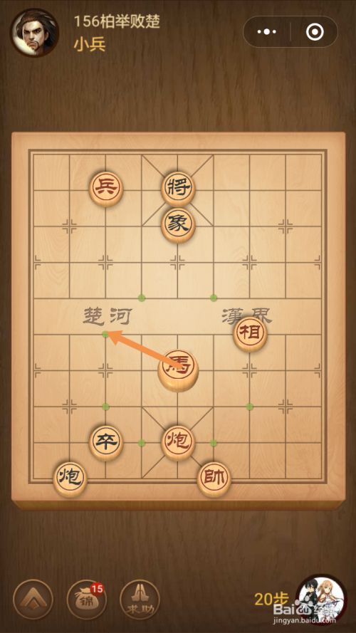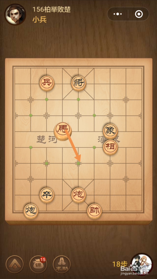 第十五步馬移动到下图中箭头标注的位置就过关了。