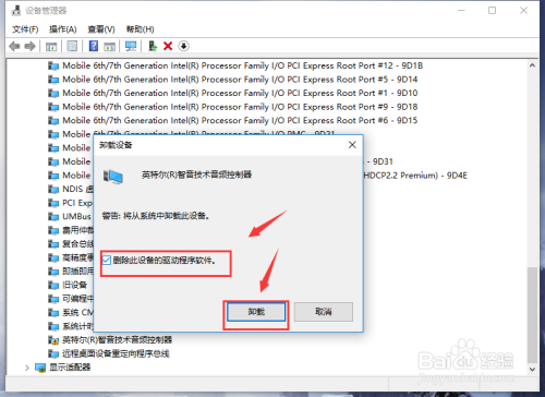 勾选删除驱动法式,点击卸载按钮,如下图所示