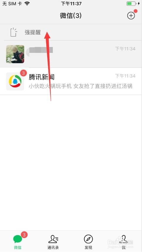 最后返回到我们的微信首页,我们可以看到多了一个强提醒,此时点击这个强提醒按钮