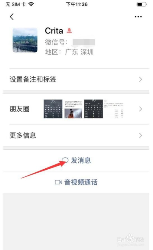 然后进入这小我的本家儿页,此时点击下面的发送动静按钮
