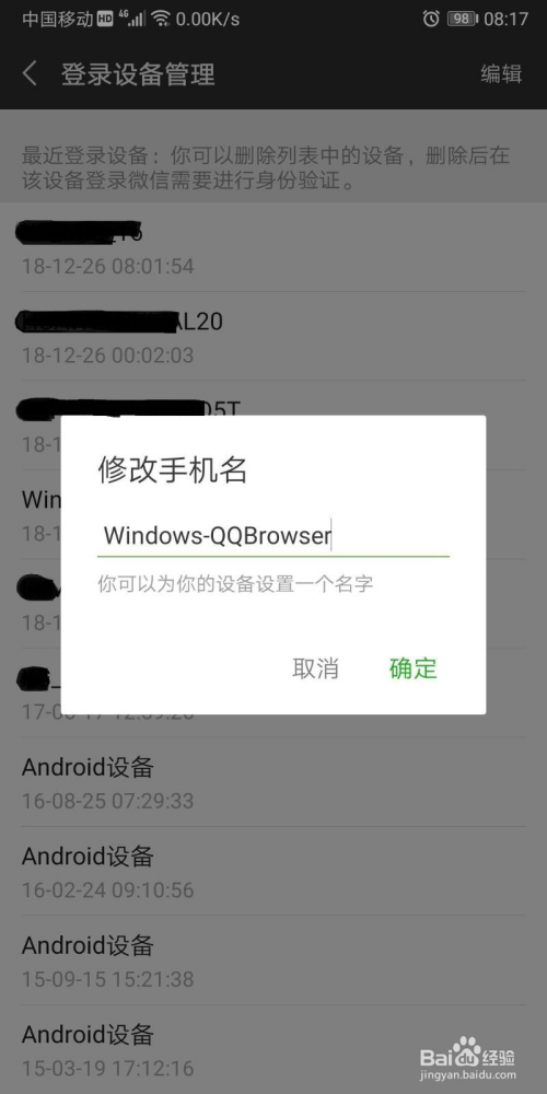 若是你不想用这些默认的设备名称,你可以点击点窜,今后再记实时就会显示点窜后的设备名称了