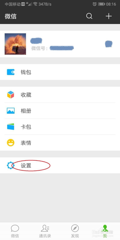 打开手机,进入手机的微信,在”我”的界面下,选择设置