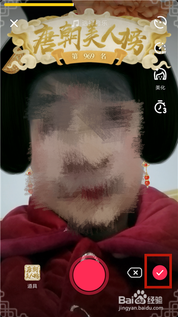 知道怎么拍摄这个视频后即可录制视频,录制完当作后点击【√】完当作录制。