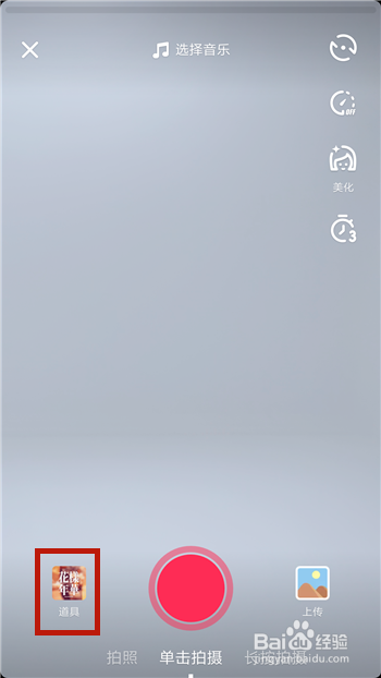 点击打开了录制界面后在左下角找到【道具】选项并点击。