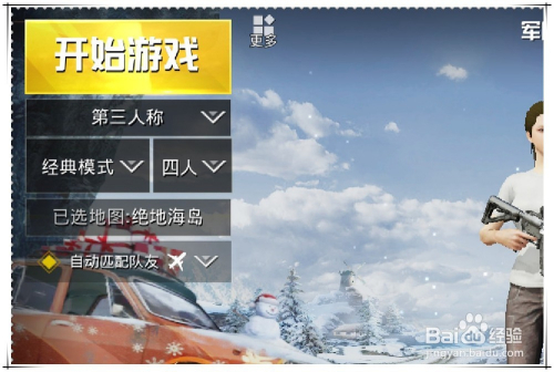 第四步,在游戏年夜厅中,选择地图为“绝地海岛”,点击“起头游戏”,匹配后进入游戏中。