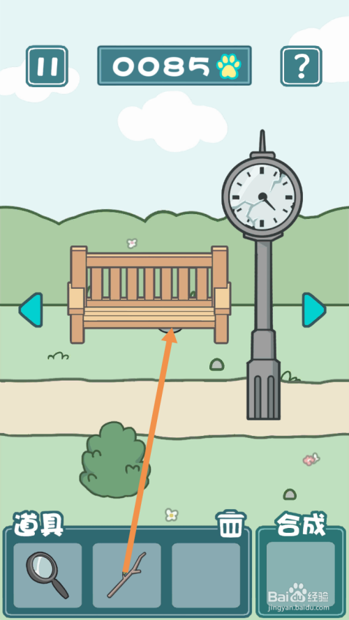 在右边,将树枝拖动到椅子底下,然后点击标的目的右箭头到最右边去。