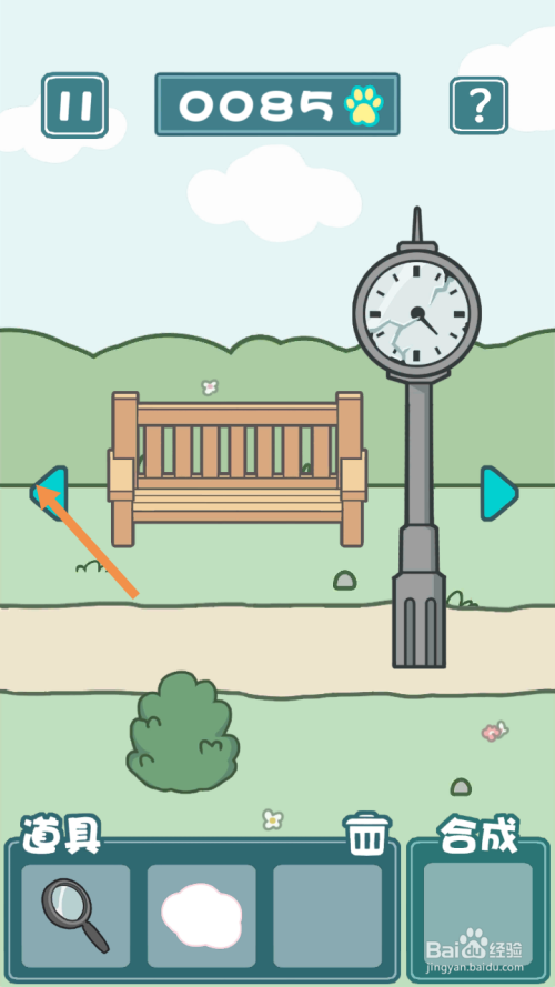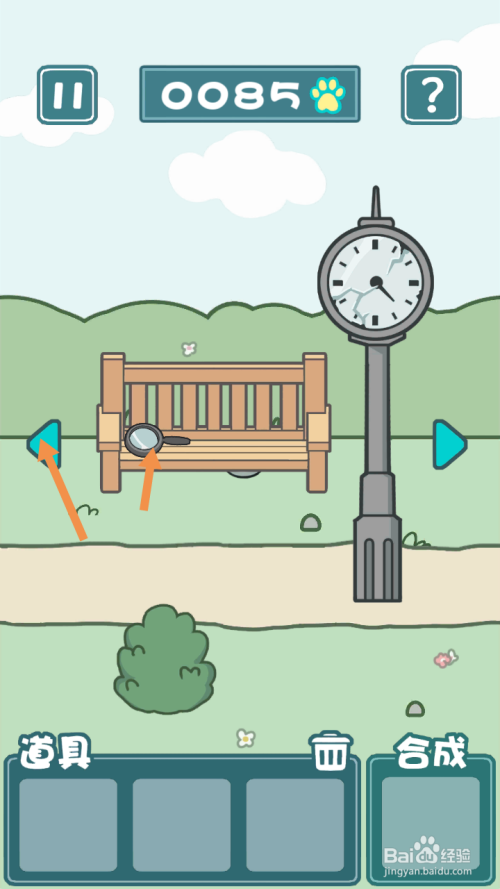 第14关先点击放年夜镜,然后点击标的目的左箭头到左边去。