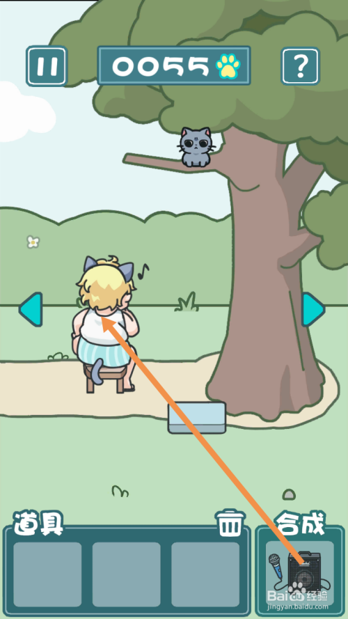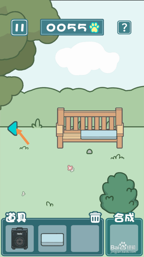 获得音响后,点击坐垫,然后点击标的目的左箭头到左边去。
