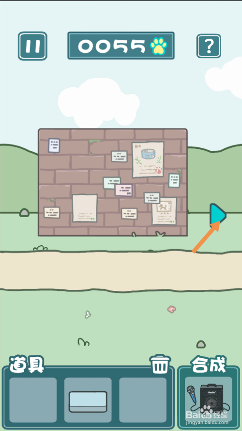 在左边点击标的目的左箭头到最左边去。在最左边,点击墙上的告白纸。