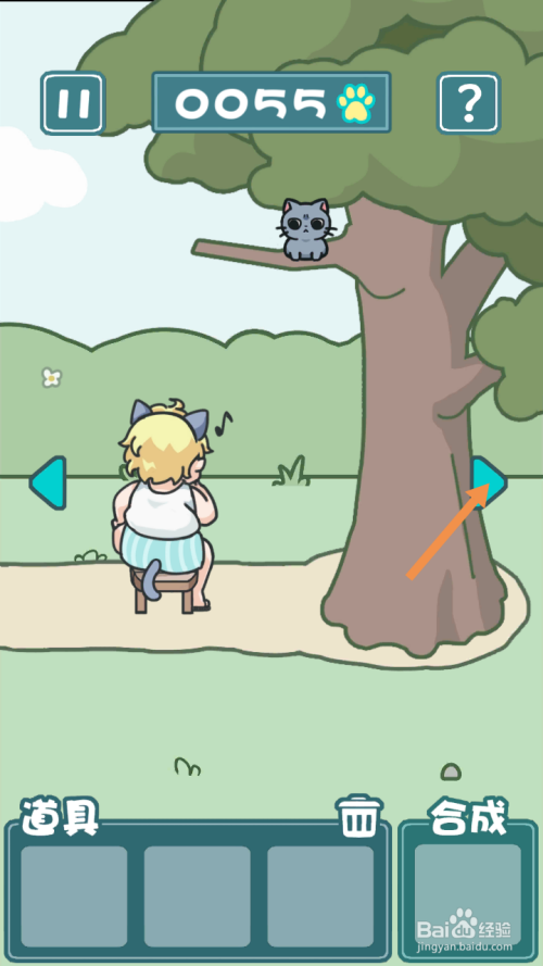 第10关先点击标的目的右箭头到右边去。